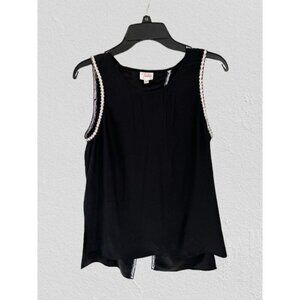 PARKER 100% Silk Top Overlapping Back Black White Size Med