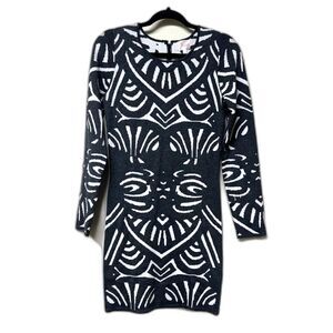 PARKER Aztec Bodycon Sweater Dress Shimmer Black/White, Sz M