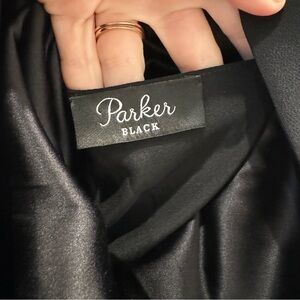 PARKER BLACK Floral Beaded Rouched Side Black Dress
