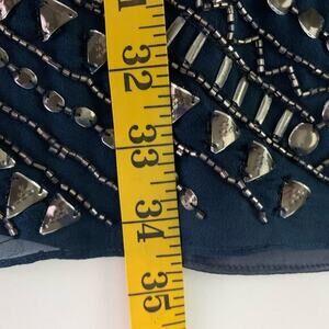 PARKER Blue Allegra Beaded Embellished Silk Sleeveless Mini Shift Dress Size M