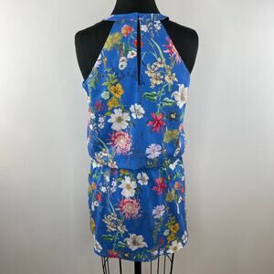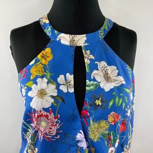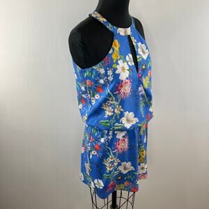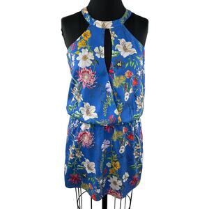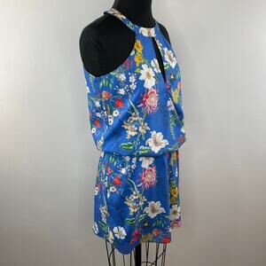 PARKER Blue Sangria Floral Keyhole Neck Surplice Sleeveless Mini A Line Dress XS