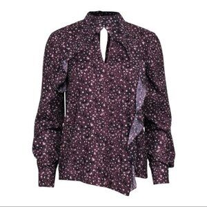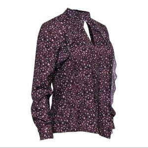 PARKER Burgundy Leopard Print Ruffled Long Sleeve Blouse Sz Small