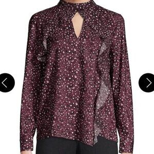 PARKER Burgundy Leopard Print Ruffled Long Sleeve Blouse Sz Small excellent gently worn condition.