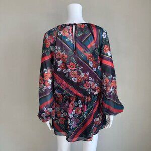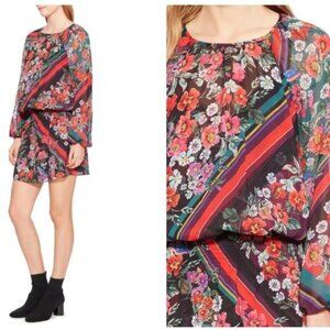PARKER Christina Floral-print Blouson Long-sleeve Dress In Madison Stripe - S