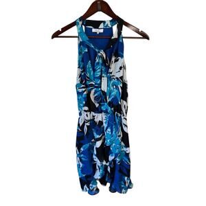 PARKER Diane Surplice Wrap Dress Mini Blue Gardenia Abstract Sz Medium Romantic