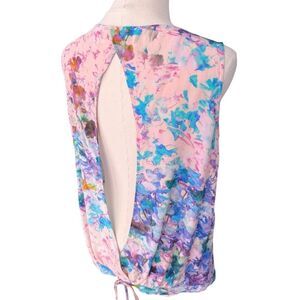 PARKER EUC Open back Silk top in Multi Floral Sketch SIZE L