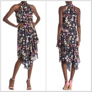 PARKER FLORAL HIGH Halter NECK SLEEVELESS ASYMMETRICAL DRESS COSMIC DAISY Sz M