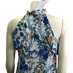 PARKER FLORAL PRINT KEY HOLE RUFFLE TOP SZ S NEW WITH TAG