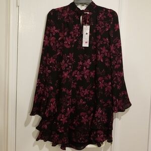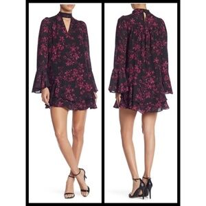💕PARKER💕 Floral Print Keyhole Ruffle Shift Dress ~ Midnight Fleur Medium M NWT