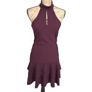 PARKER LUANA HALTER SLEEVELESS PERFORATED MOTIF RUFFLE DRESS RAISIN Size 4 New