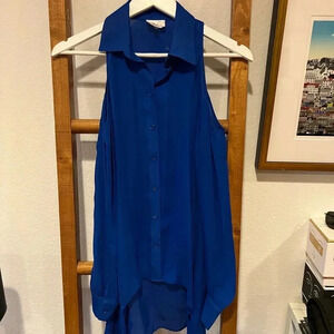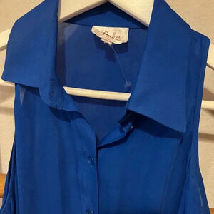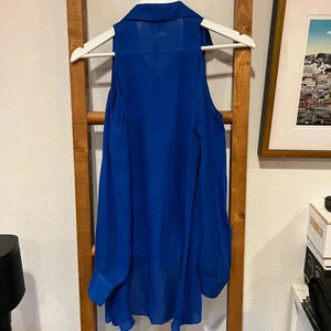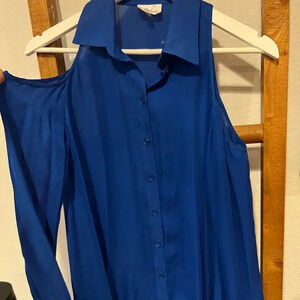 PARKER NEW Cobalt Blue Cold Shoulder Hi Low Button Front Blouse Top Silk