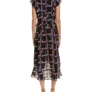 Parker Painterly Plaid Midi Ruffle Flutter Sleeve Hi Low Dress Size XS New