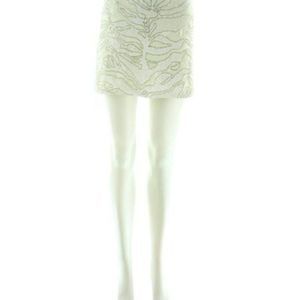 PARKER Sequin White Mini Skirt New With Tags, Heavily Beaded and Sequined Abstract Design, Back Hidden Zipper, Lined, No Waistband, Eye-Catching, Comes With Additional Beads & Sequins, All Items Are Guaranteed Authentic.