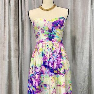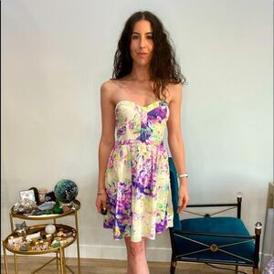 This strapless dress is so flirty and sweet! The color combination makes it super easy to accessorize. The perfect dress for when we all get to dance together again ❤️