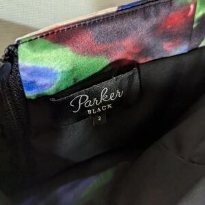 Parker Black colorful, floral, strapless, lined sateen dress, size 2