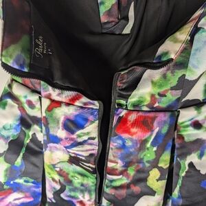 Colorful, satin, formal, prom, wedding, party, holiday, strapless, tie dye, abstract, art to wear, watercolor, spring formal, black tie
