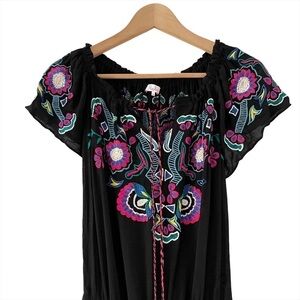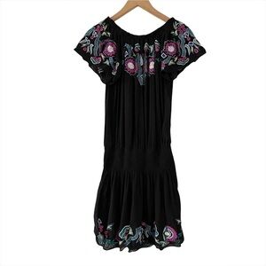 Parker "Tammy" mini dress featuring Southwestern-style embroidery.