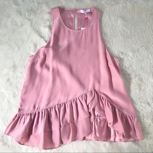 Parker Rose Pink Sleeveless Silk Ruffle Blouse