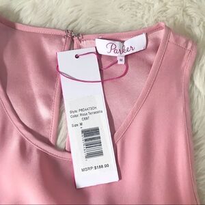 PARKER 100% Silk Sleeveless Pink Top Tank Blouse Ruffle Hem Size Medium New