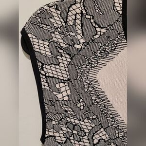 Parker blush/black bodycon sweater dress, lace print, stretch knit with zip back closure. Size M