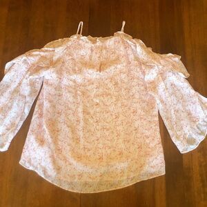Parker Cold Shoulder Blouse, White/Pink, 3/4 split sleeves Armpit to armpit: 19.5” Size S