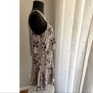 Stand out in snakeskin print on this silk Chelsea dress from Parker, with a tiered top and A-line skirt that creates a flowing silhouette. Parker silk tiered dress in snakeskin print. Approx. 34 1/4"L from top of dress to hem. Jewel neckline with marquis keyhole. Sleeveless; cutaway shoulders with minimal coverage. Tiered top slightly billows over skirt; arched hem. Lightly ruffled A-line skirt with round hem. Flowing silhouette.