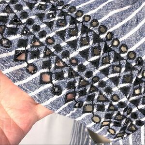 PARKER VALERIE LINEN BLEND STRIPED EMBROIDERED TOP