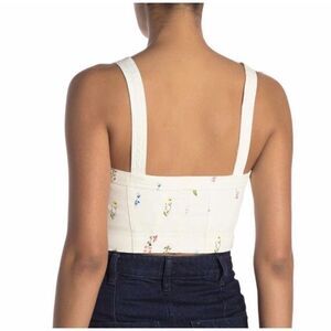 PARKER Womens Ivory Floral Denim Bustier Snap-Front Crop Top EUC Ivan Sz Large L