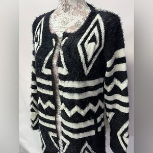 Black and white graphic print cardigan sweater from PARKHURST, size L. Gorgeous sweater and soft and cozy!