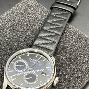 PARNIS 43mm Black Dial Calendar Power Reserve Seagull Leather Automatic Watch