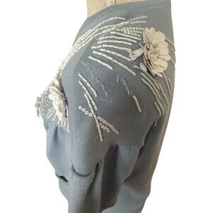 P.A.R.O.S.H. Blue Beaded Embroidered Flower Blouse Size Small