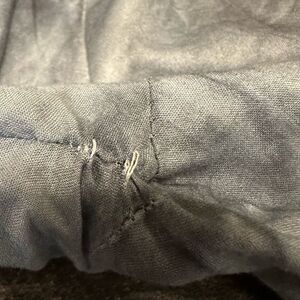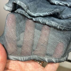 Good Used Condition. There are a few underarm exposed stitches and a small section of back hem trim needs to be re-stitched. See last two photos. Otherwise, no visible flaws.