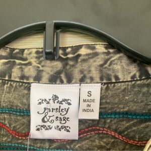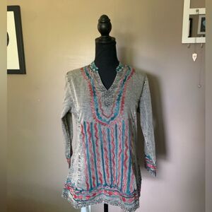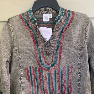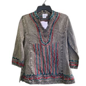 PARSLEY & SAGE embroidered tunic top blouse boho chic grey teal red sz S NWT