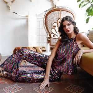 Multi Color Sequin Square Neck Cami Top & Flare Pants Set