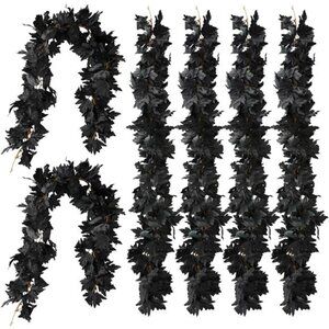 Party Joy 6Pcs Black Fall Garland Maple Leaves for Mantle, 5.6Ft Artificial Hanging Vines Autumn Garland Helloween Decor for Party Home. brand (item) : PARTY JOY