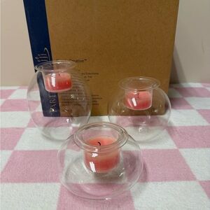 Keywords: tealight candles, party lite, peach scent, home decor, ambiance, fragrance, cozy, romantic, spa night, dining table, relaxation, candle lovers, gift idea, decorative