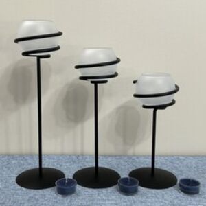 *Set of 3 Spiral Candle Holders made of varying heights of Black Wrought Iron with a semi-matte powder-coated finish