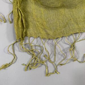 PAS de CALAIS Green Woven Linen Fringe Scarf