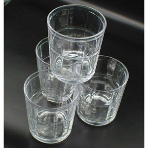 Set Of 4 PASABAHCE Turkish Glass Tumblers Clear Squares Pattern Vintage. They Hold 12 oz and measure 4" H x 3 1/2" diameter.