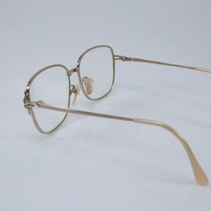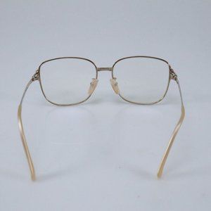 Good condition. Frames are lightweight, flattering, and comfortable. They have a prescription in the lenses. Faint surface scratch on lenses. Would be great to fit with new lenses or prescription. There is a mark on one arm which may or may not come off. They were quickly cleaned, but could be cleaned further. Looks like makeup residue on nose pads.