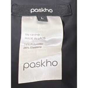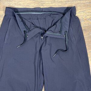 Polyester/Elastane. Lightweight travel pants by Pashko. Features tapered leg; interior drawstring for custom fit; zip/snap closure; zip close hip pockets; no rear pockets; machine wash. He never wore these. Top of waist measures approx 18" across, 12" rise, 34" inseam.