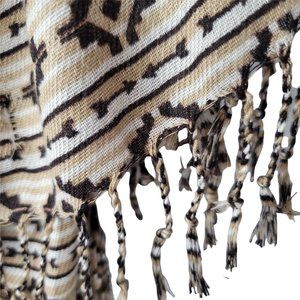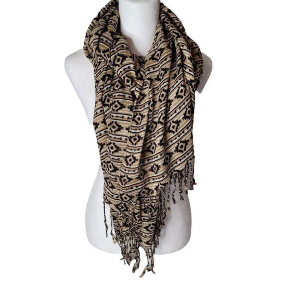 PASHMIRE Brown & Cream Boho Geometric Arrow Pashmina Fringe Scarf Shawl