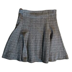 PASHUT Wool A-Line Skirt Herringbone Knee Length Pleated Gray Academia Israel