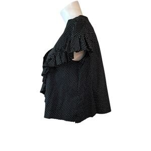 PASKAL CROP Polka Dot Ruffle Trim Blouse Cut By Hand sz M $330 Flawed-Read desc