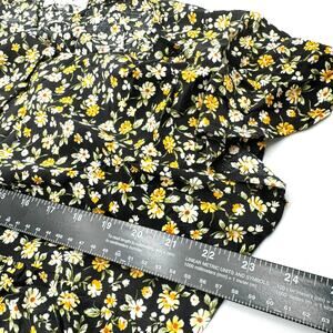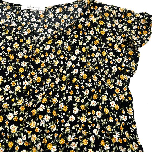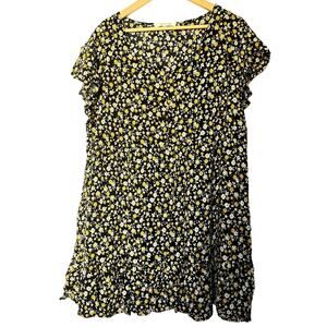 PASSPORT 2X Black Yellow Ditsy Floral Short Flutter sleeve Babydoll Midi Dress