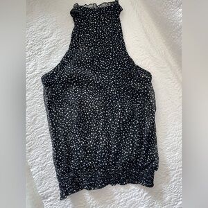 PASSPORT Polka Dot Ruffle Button Up Sleeveless Blouse