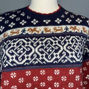 PAST TIMES 1990's Y2K 100% WOOL MADE IN U.K. NORDIC ALPINE GRAPHIC SWEATER EUC M