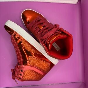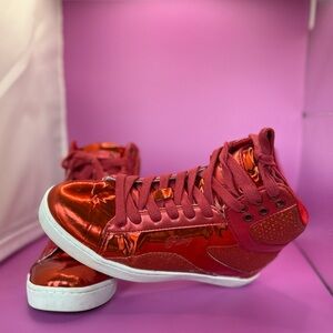 #Dance #hiphop #Pastry #PopTart #Hightops #Glitter #sparkly #sneakers #red #strawberry #candyapple #casual #streetwear