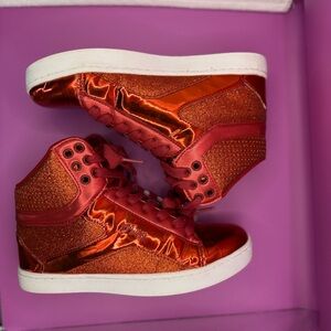 PASTRY Pop-Tart Hip-Hop Dance Sneakers. In candy- apple red with glitter and shine. Women's size 6.5 (EU 37). In great, preowned condition.