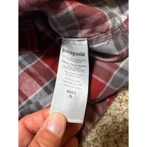 PATAGONIA Long Sleeve shirt, size XL, Lightweight Flannel' Red, Lt. Gray & Dark Gray Plaid; Organic Cotton Blend. In Excellent, pre-owned condition.